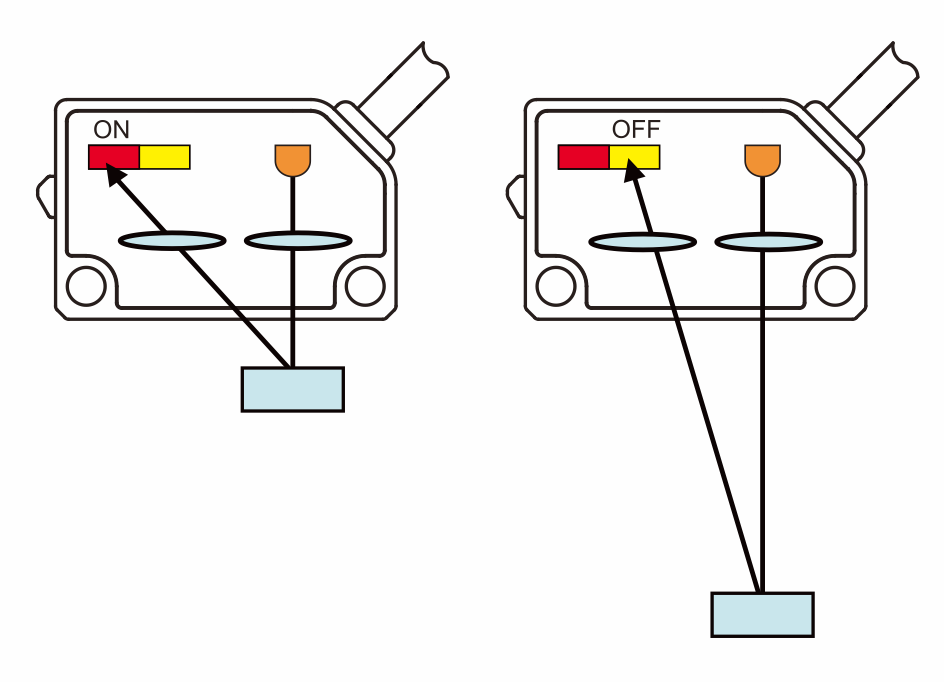 普通漫反射型光電開關的原理是利用檢測光遇到被檢物后反射回傳感器接收端的光值大小來判斷,所以它會受到物體吸光程度的影響,物體的顏色、材質,背景的反光度等。