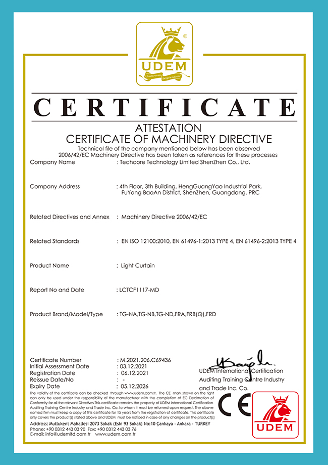 ECOTTER 安全光幕具有自檢功能,采用多個核片設計構成,多核工作原理使產品在工作時有任何自身異常狀態將立即報錯,引起安全警惕。