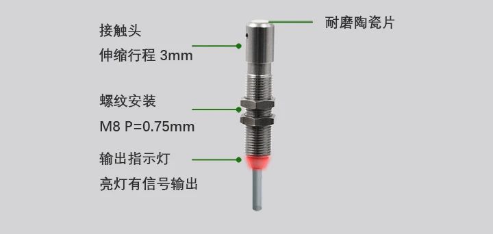 ECOTTER自主研發了接觸式傳感器S2-CS078和探桿式S2-CS089系列,常用于接觸檢測、原點定位等工業自動化場景,S2-CS078接觸面帶耐磨陶瓷片,產品使用更長久。