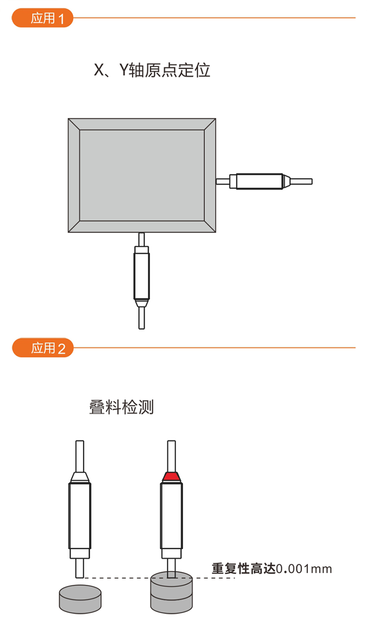 如X\Y軸定位,在物體運動的X/Y軸上安裝該傳感器,當物體朝軸方向運動,按壓到傳感器后在觸發信號的位置輸出信號,再控制物體停止或做其他動作。