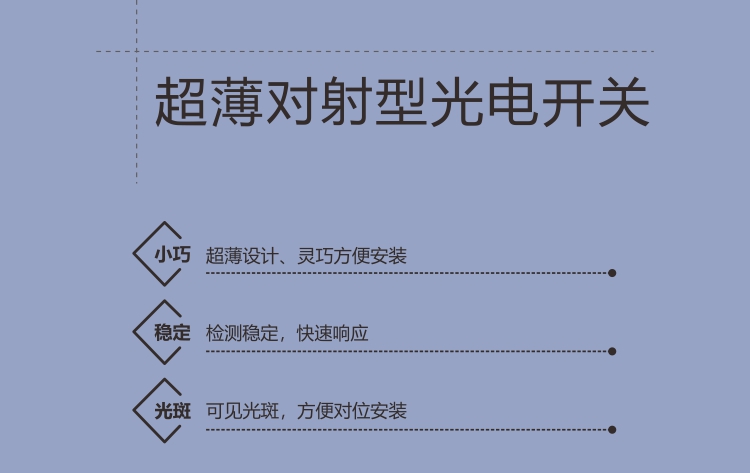 這款光電開關尺寸小巧,機身厚度比較薄為5毫米左右只需些許空間,即可安裝。配備雙色指示燈,可視化了解產品工作狀態。
