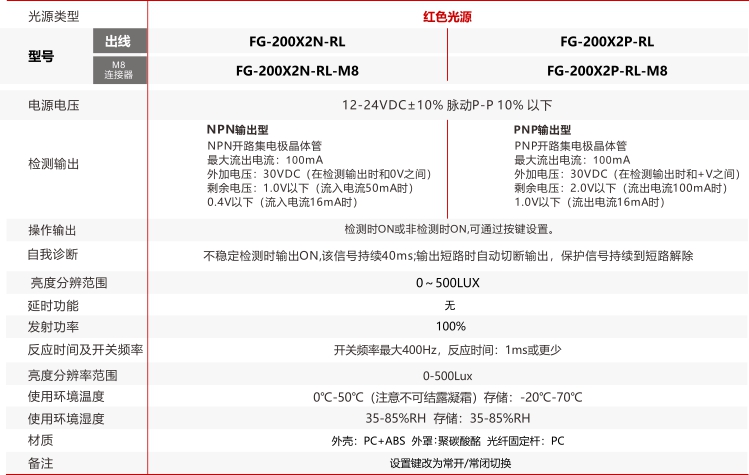 ECOTTER 外來光源檢測光纖傳感器 FG-200X2N-RL 可以對所有光源進行檢測,而不僅僅是對傳感器自身發出的光進行檢測,在工業自動化的應用中,可以檢測手機屏是否正常亮起,電子產品的指示燈是否正常等檢測。