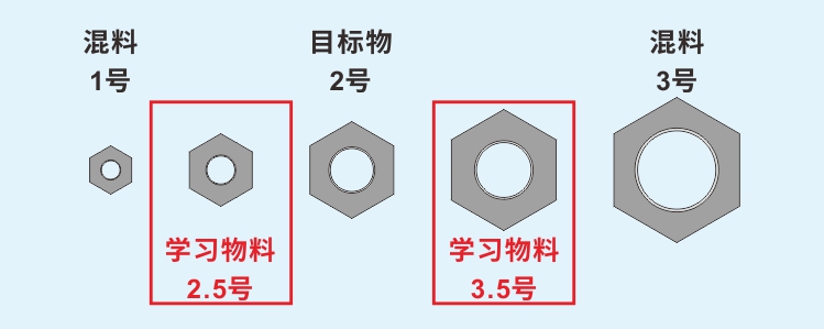 目標物通過傳感器檢測區域時會以各種姿勢進行,所以我們為了避免漏檢,經常會選擇比原目標物稍大和稍小的物料進行學習。