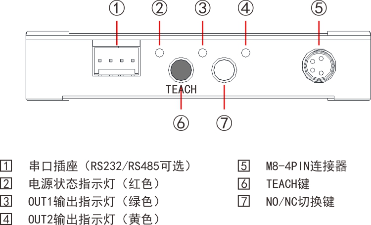 學習時長按TEACH,進入學習狀態時黃綠兩個輸出指示燈會交替閃爍,這時我們將學習物料依次通過框型計數傳感器的檢測區域,閃燈結束就可以正常的使用。