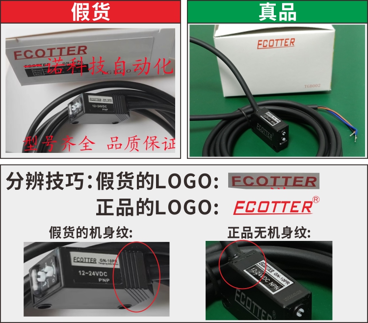 ECOTTER天工傳感在工業自動化行業有二十多年的品牌歷史,我們通過優質的技術服務和選型經驗獲得客戶的信任。隨意盜用我們的品牌,提供劣質產品和服務給客戶,嚴重侵害客戶利益,嚴重傷害ECOTTER天工傳感品牌信譽。正告那些制假售價企業及個人遵守社會公序良德,遵紀守法,良性競爭,立即停止侵權。請客戶選購時選擇官方渠道,辨明正品,感謝大家配合及支持!