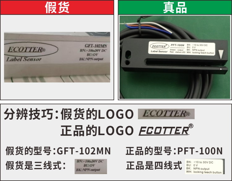 這里我們將舉例教大家分辨ECOTTER天工傳感的正品和外部冒充的假貨,讓消費者購買到正品,也提醒假冒產品制售人員立即改正錯誤,停止不良行為。