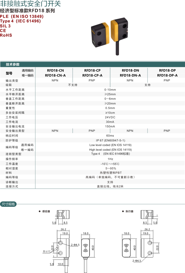 ECOTTER 非接觸安全門開關(guān)RFD18系列提供更大程度的防篡改保護(hù)
