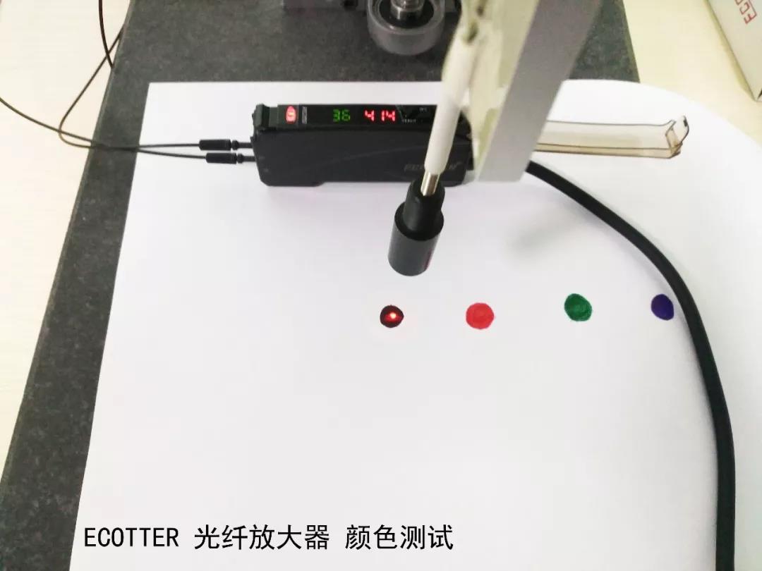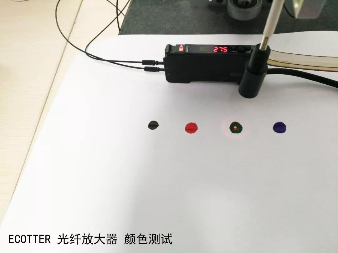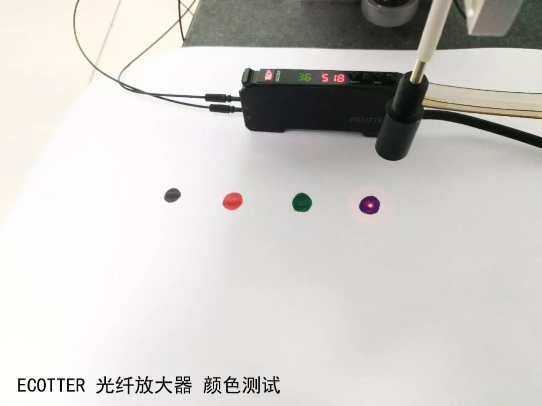 下面我們用ECOTTER 的光纖放大器和光纖做測試,在同一高度、同一材質上抽樣讀取黑、紅、藍、綠幾個顏色的數據。