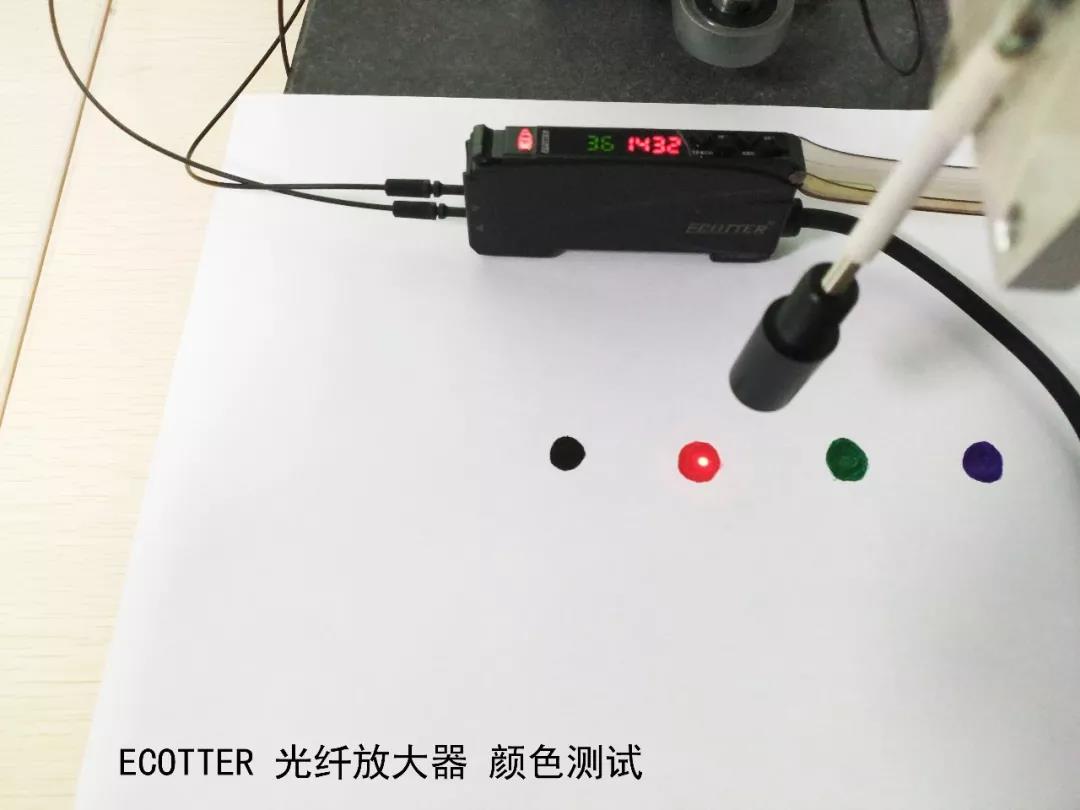 另外,如果兩個顏色比較接近,那么要用到高精度的光纖放大器來做區分檢測。ECOTTER 的FG-40 光纖放大器 的分辨率可達到 12bit 的精度,可以對接近的顏色做檢測判斷。