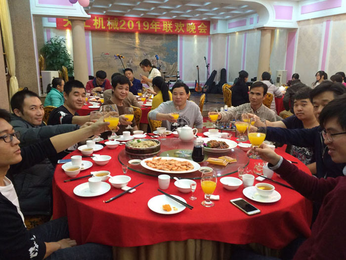 晚會,開始楊總就為我們總結過去,展望未來,同時帶領我們為了天工這個大家庭的親情、友情、恩情一起舉杯歡飲。