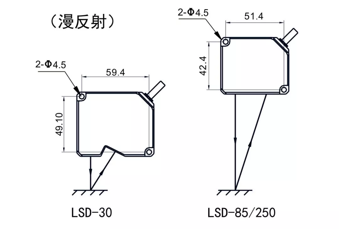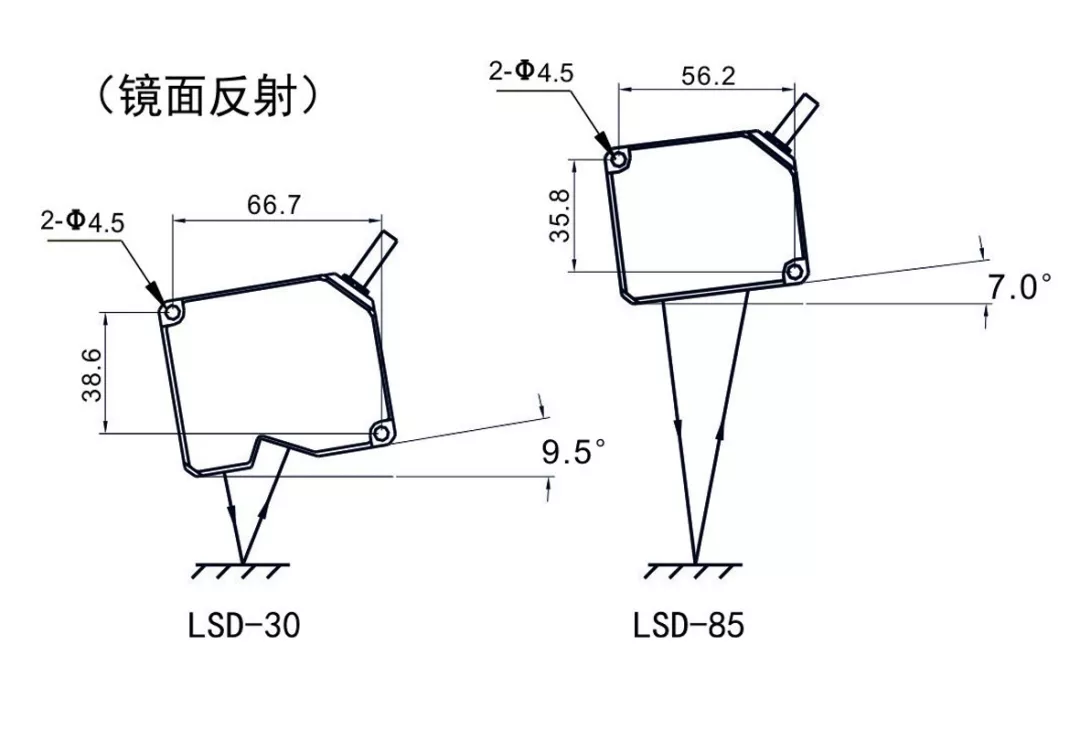 對鏡面反射表面的檢測,請保證投光部的面與測定對象物成一定夾角,使發(fā)射的激光經(jīng)測定物反射后進入受光部。