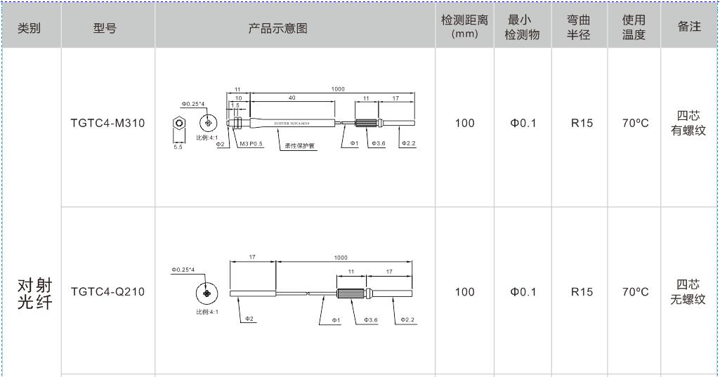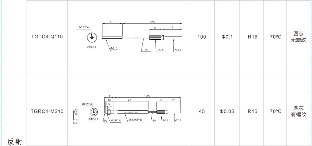 首頁 > 產品中心 >>傳 感 器 >> 光纖傳感器 >> 四芯系列光纖
