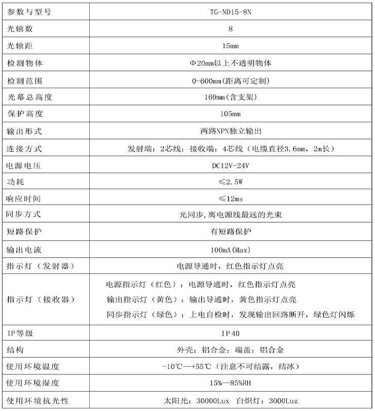 首頁 > 產品中心 >>傳 感 器 >> 安全光幕 >> 四級安全光幕超薄型TG-ND15-8系列