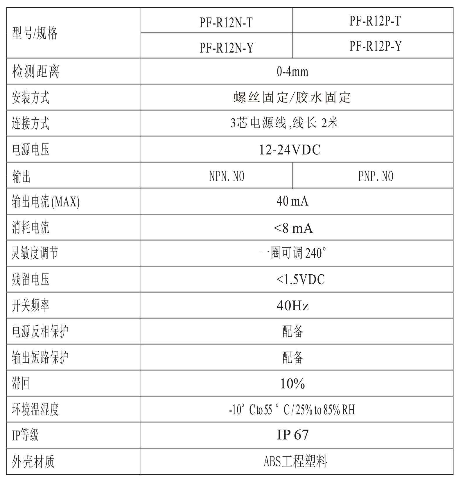 首頁 > 產品中心 >>傳 感 器 >> 電容傳感器 >> 方型電容式傳感器PF-R12-T/Y