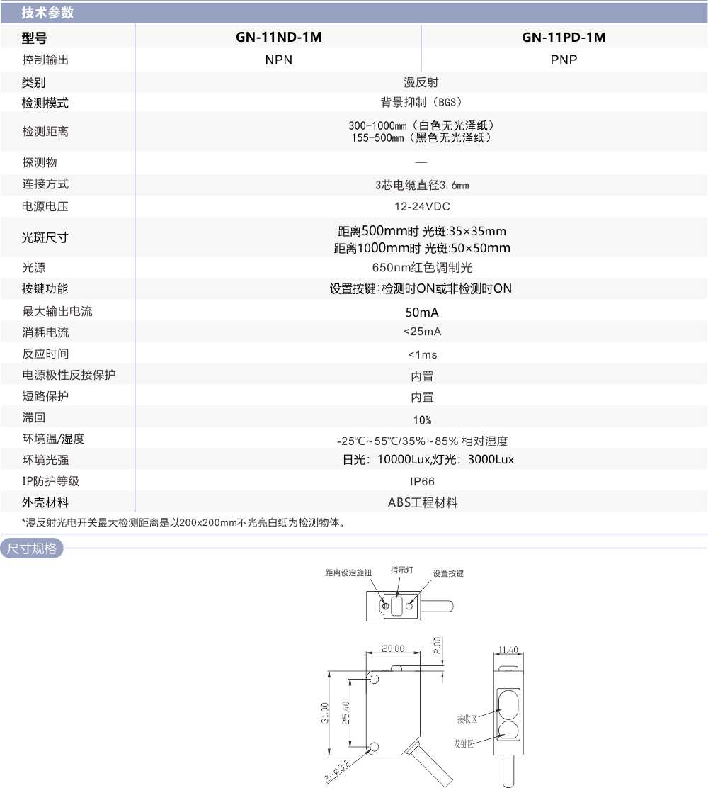 背景抑制光電開關(guān) GN-11D-1M