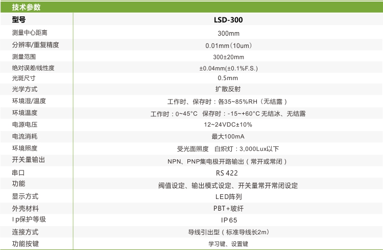 首頁 > 產品中心 >>傳 感 器 >> 激光位移傳感器 >> 激光位移傳感器 LSD-300